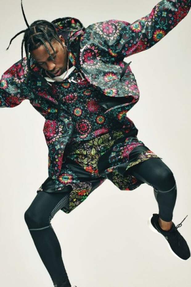 Scott wears a NikeLab x RT jacket ($225), T-shirt ($75), and shorts ($120);
